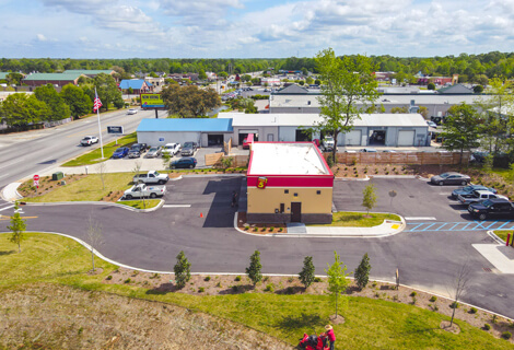 Take 5 is a popular drive-thru oil change facility known for its quick, hassle-free service. CBE has been fortunate to work on several Take 5 facilities throughout the Lowcountry. This project is located along North Hwy 52 in Moncks Corner, SC and involves the construction of a 1,100 sf service building, stormwater management system, utility connections, parking, landscaping, and a new rear cross-connection driveway connecting the site to neighboring businesses and ultimately Epson Plantation Drive.